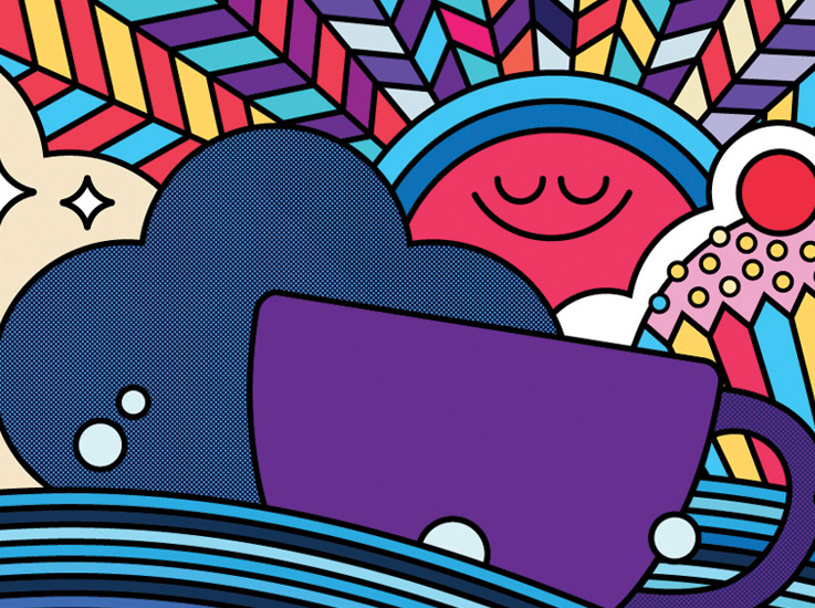 I was tasked with creating a piece of bright outdoor artwork suitable for all ages. The brief required the inclusion of several key elements surrounding the site which were a cafe / bakery, the